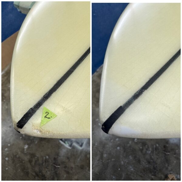 Evaluation of the technical condition of the surfboard: water tightness test, fin box inspection and cleaning, cleaning of the leash and replacement of the leash stringSurfboard maintenance: removing old wax, polishing the board and applying new wax